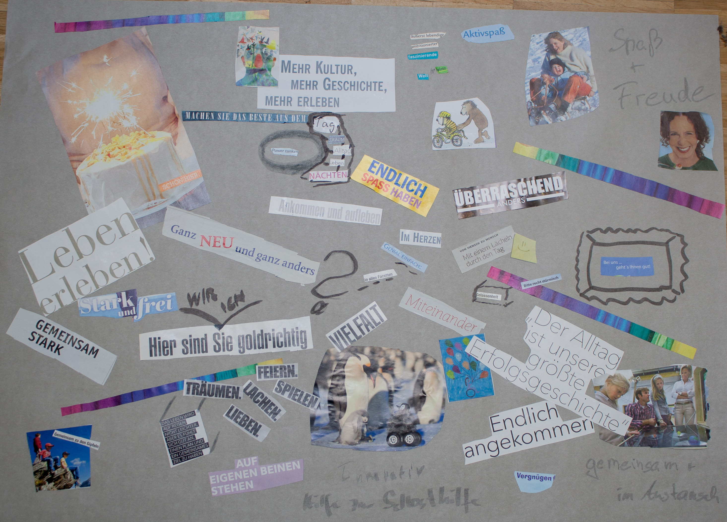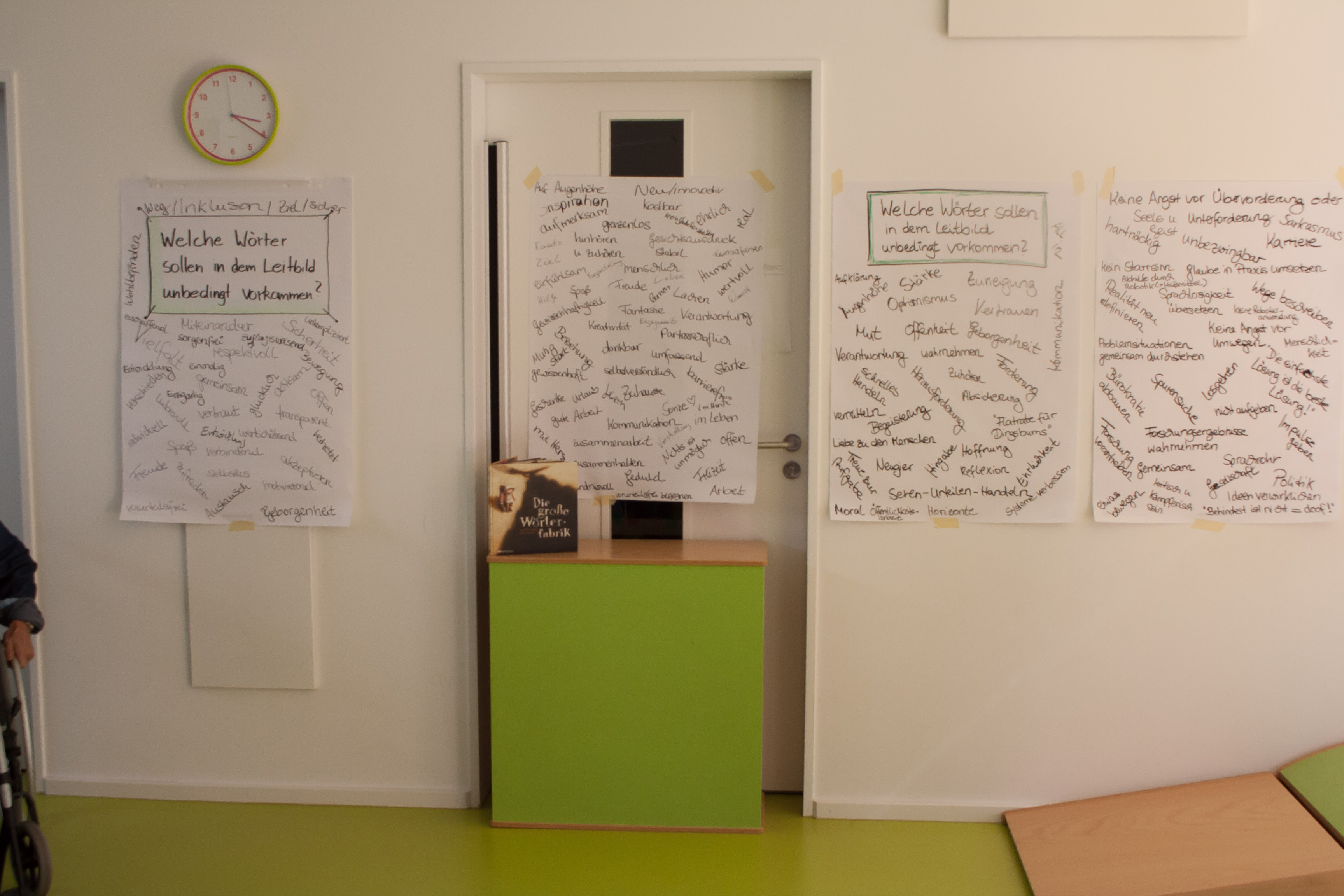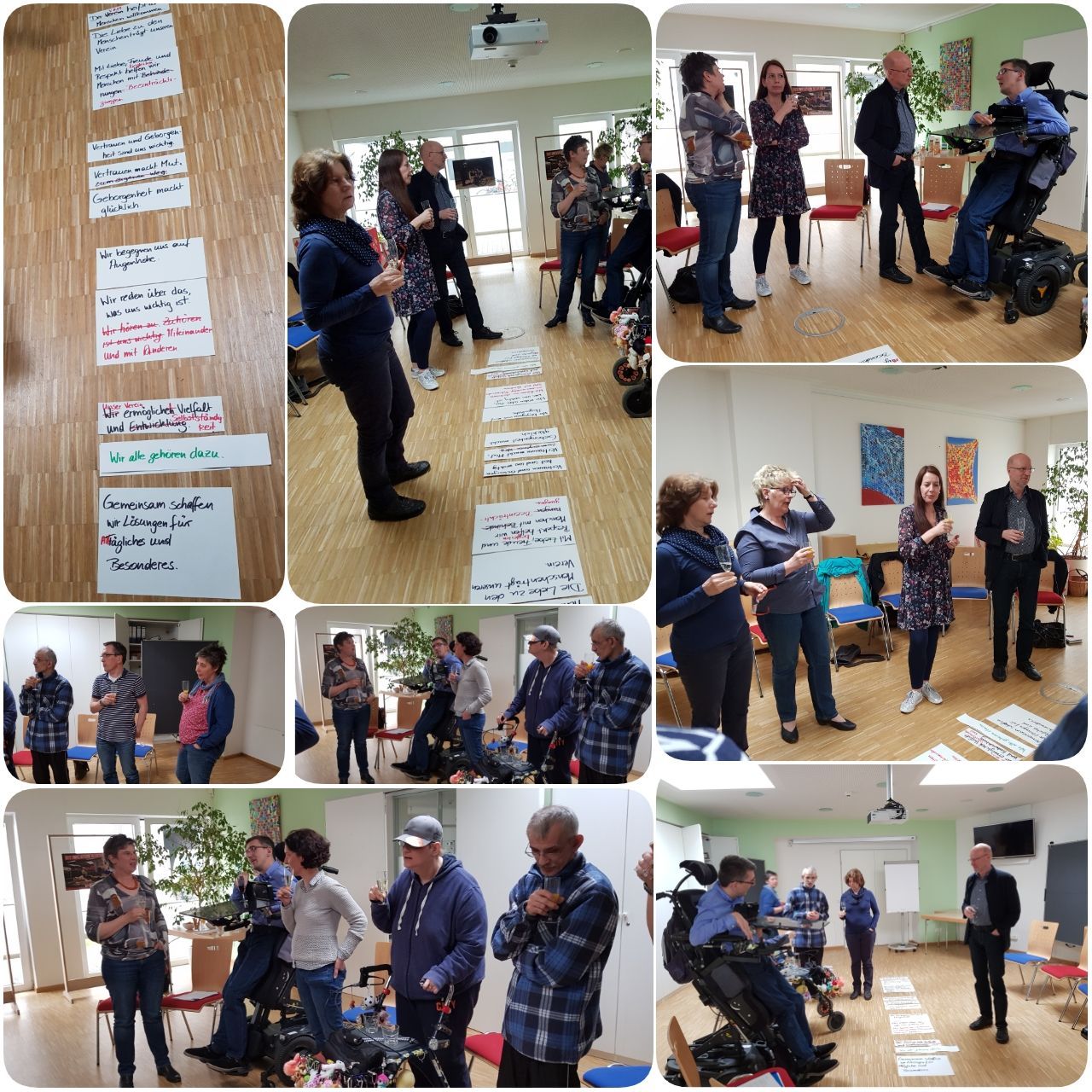 Anschließend haben wir Sätze formuliert, die zusammen das Leitbild ergeben. Wir haben miteinander beschlossen, das Leitbild in einfacher Sprache zu formulieren, damit wir es alle gut verstehen können.