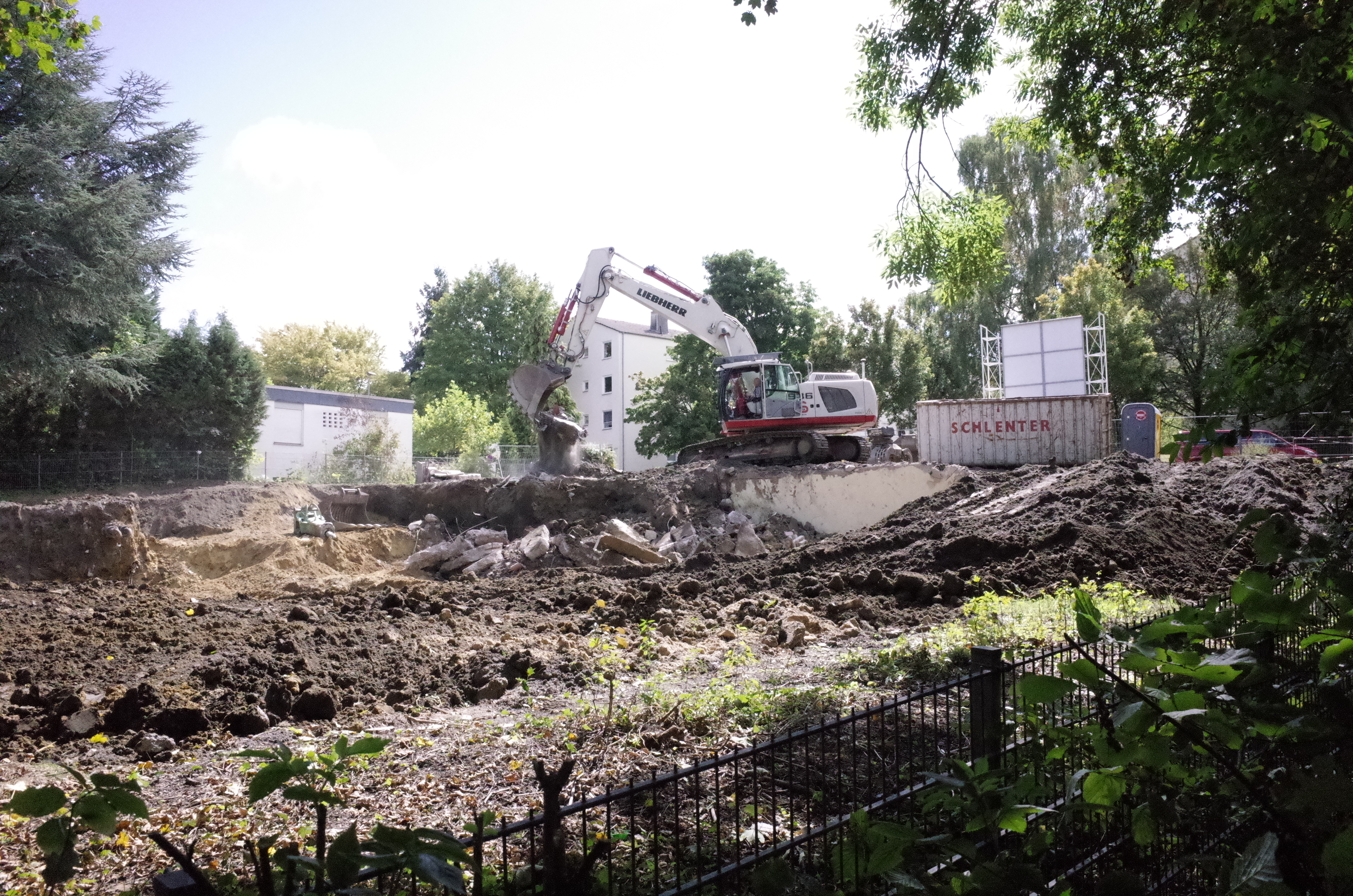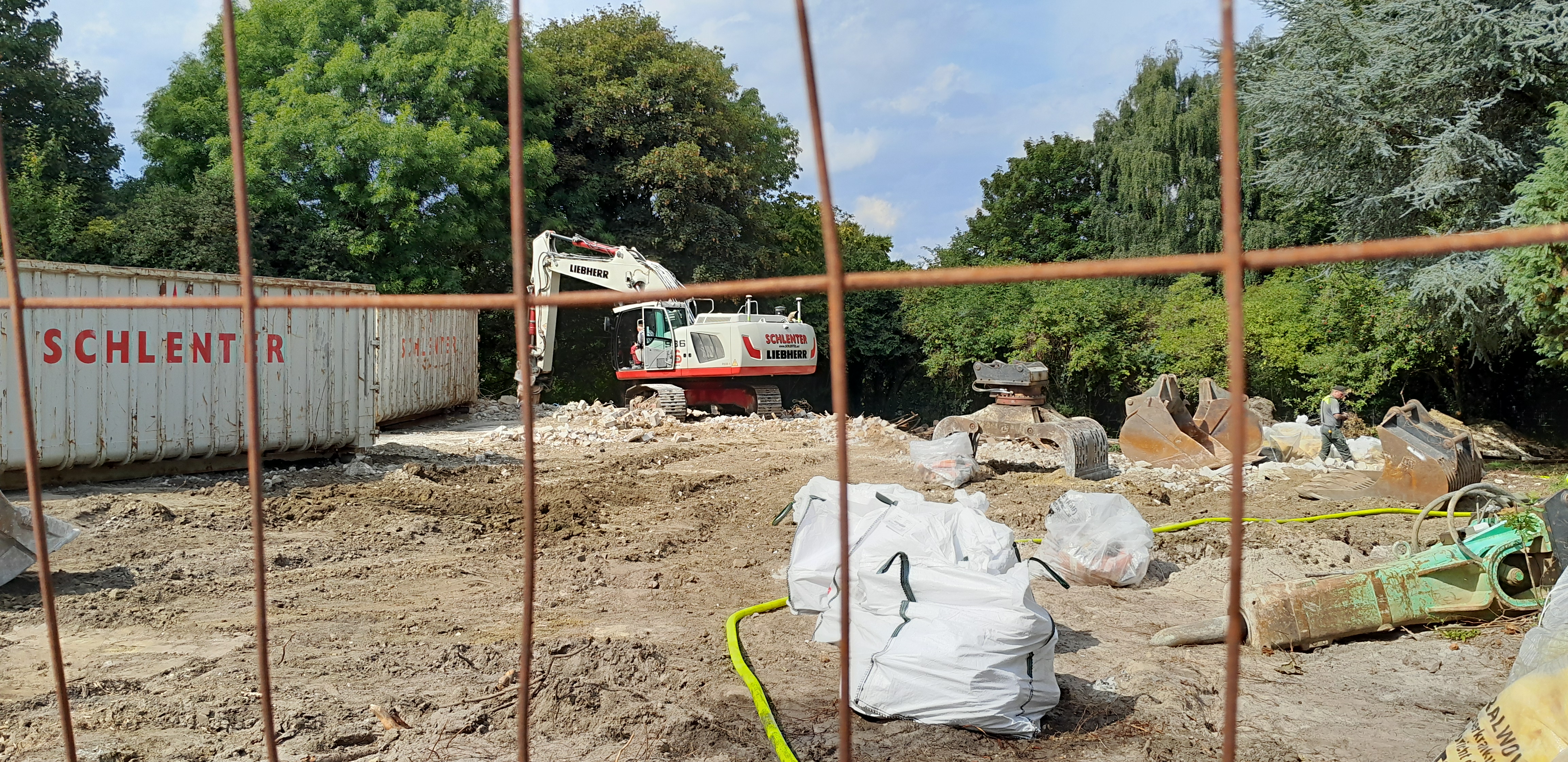 Die ersten Arbeiten haben am Kronenberg 50 begonnen. Der alte Montessori-Kindergarten wird abgerissen – und wo Neues entsteht, wird’s manchmal laut, staubig und ein bisschen eng. Auch große Fahrzeuge und vorübergehende Einschränkungen rund ums Gelände gehören dazu.